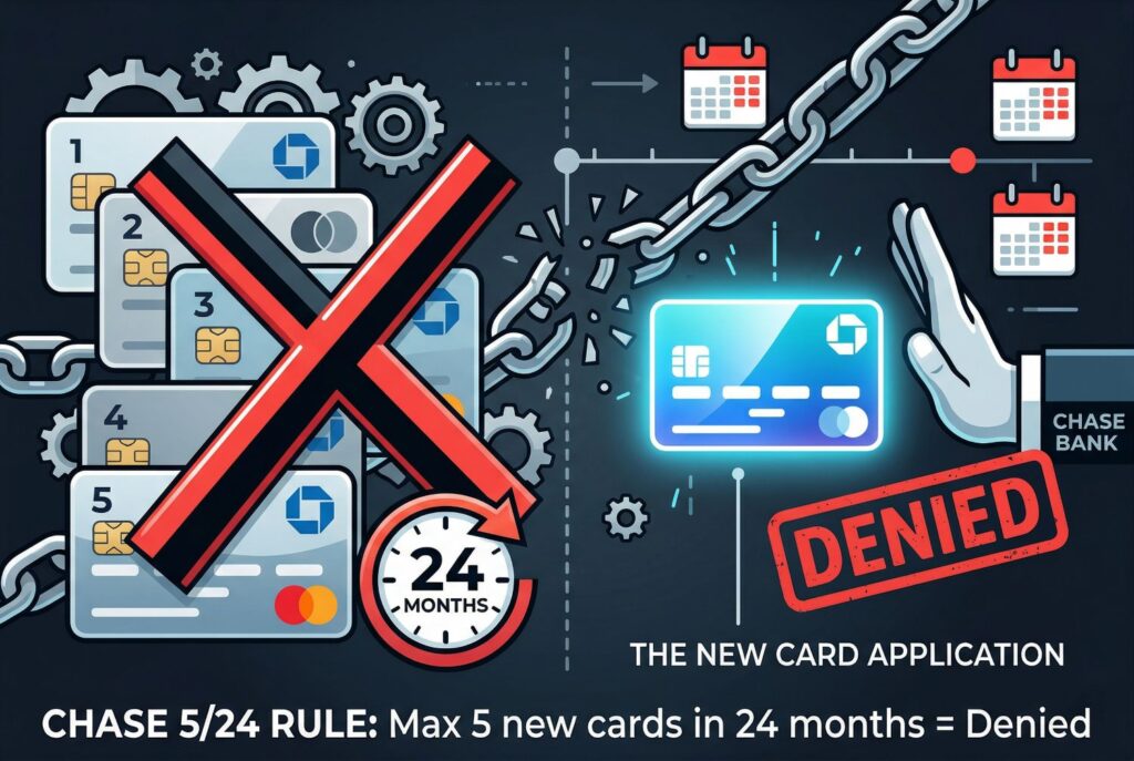 One of the biggest unwritten factors is the 5/24 rule. In simple terms, if you’ve opened five or more credit cards across any issuers in the past 24 months, Chase may deny your application even if your score is excellent.