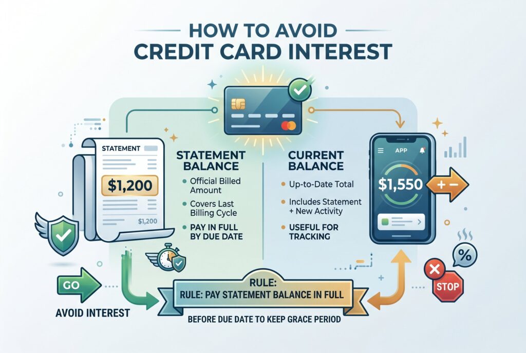 If your goal is to avoid paying interest, you only need to pay the statement balance in full by the due date. You don’t have to pay the current balance to avoid interest. That’s the most important rule in this whole topic.