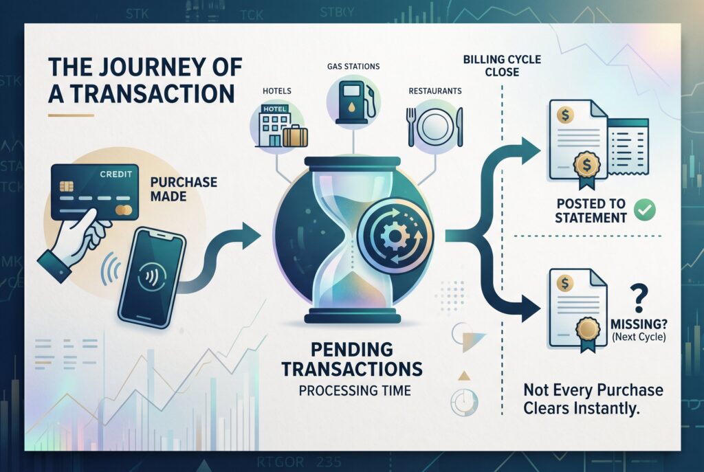 Why wouldn’t every purchase you made show up on your account statement? Because of pending transactions. Not every purchase clears instantly. Some transactions stay pending for a short time before they officially post. If you make a purchase near the exact end of your billing cycle, it may not be clear in time to appear on the statement that just closed. Instead, it shows up in your current balance and lands on the next statement.