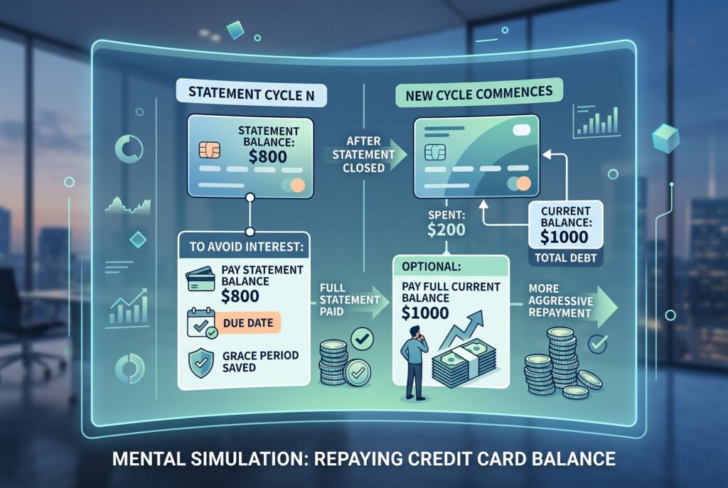 If you pay the $800 statement balance by the due date, you’ve done enough to avoid interest on the billed amount and preserve your grace period in a typical account situation. The extra $200 remains on the account, but it belongs to the next statement cycle. If you choose to pay the full $1,000 current balance, that’s also fine. You’ll reduce your balance more aggressively, and it may help with utilization. But it isn’t required to avoid interest in the usual grace-period scenario. That’s the distinction many cardholders miss.