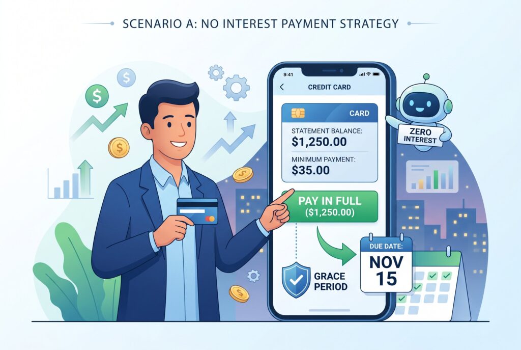 Pay the statement balance in full by the due date. This is the cleanest strategy for most cardholders. As long as your grace period is active, paying the full statement balance means you aren’t charged interest on that billed amount. New purchases made after the statement closed usually won’t start accruing interest immediately because they belong to the next cycle. If your goal is simple and sustainable, this is the best default rule.