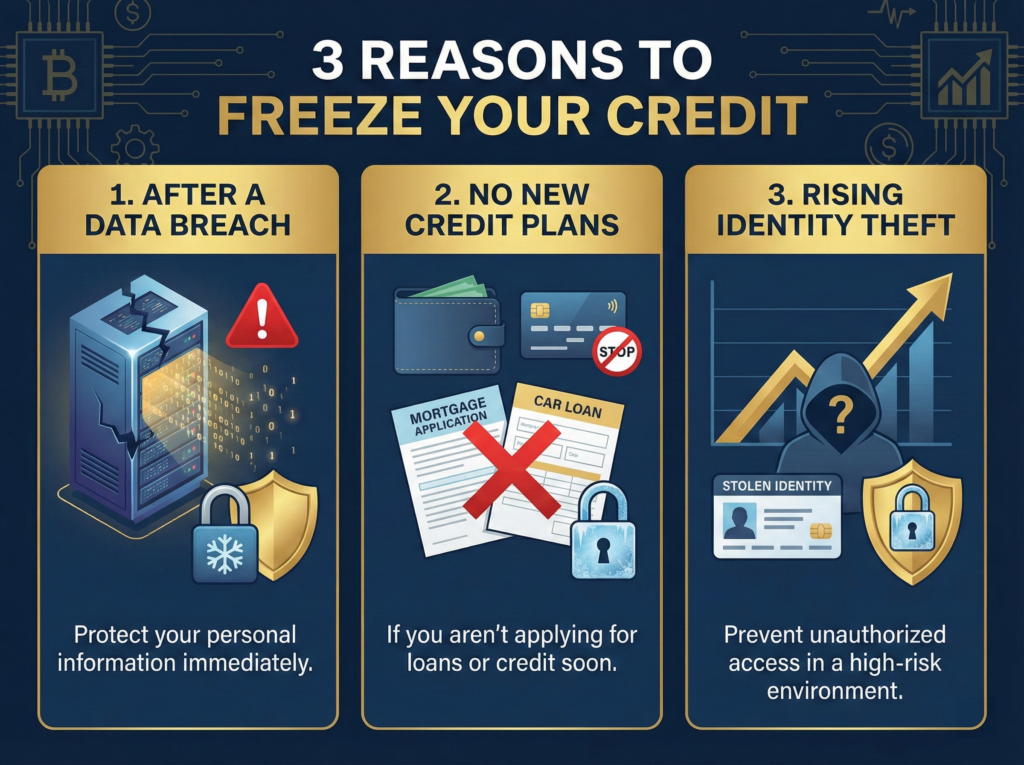 If your data was compromised in a data breach or you suspect your personal details may have been stolen, freezing your credit prevents criminals from opening new accounts in your name. This is one of the primary reasons many people opt for a credit freeze.