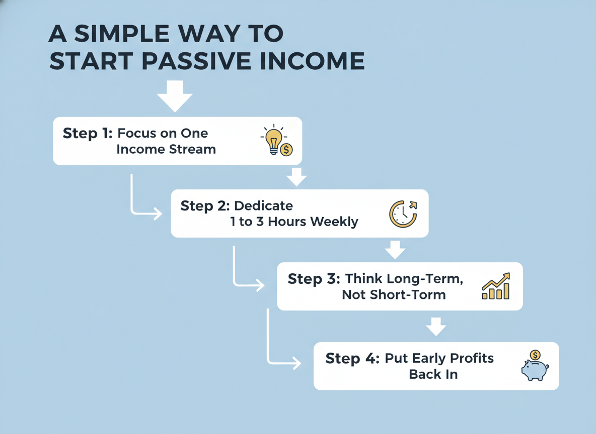 Most people who succeed start small by focusing on a single income source. They take the time to understand how it works, improve it, and make it reliable before trying to expand. Attempting to build multiple income streams at once often leads to overwhelming and slow progress.