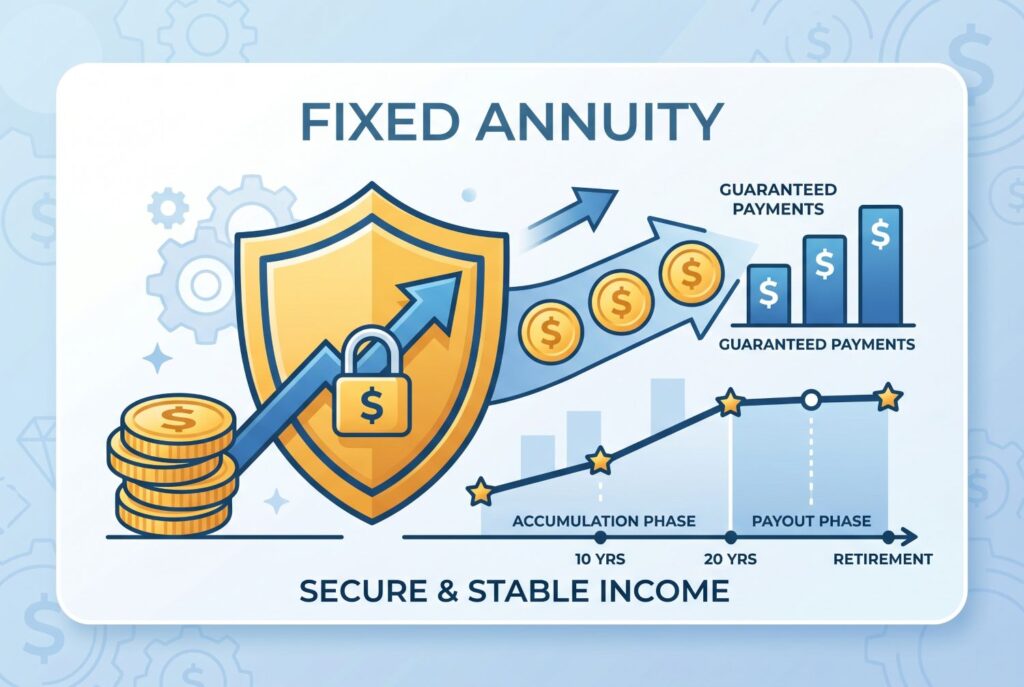 If you’re asking what is a fixed annuity, think of it as the simplest version of the product. A fixed annuity generally offers a stated rate of return or a contract-backed crediting structure that doesn’t fluctuate with the stock market. A fixed rate annuity appeals to conservative savers because the growth path is more stable and easier to understand than market-linked alternatives.