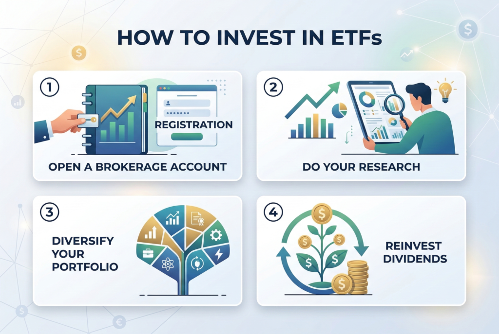 To buy ETFs, you’ll need a brokerage account. Many online brokers offer commission-free trading for ETFs, making it affordable for new investors to start. Compare brokers to find one with low fees and a user-friendly platform.