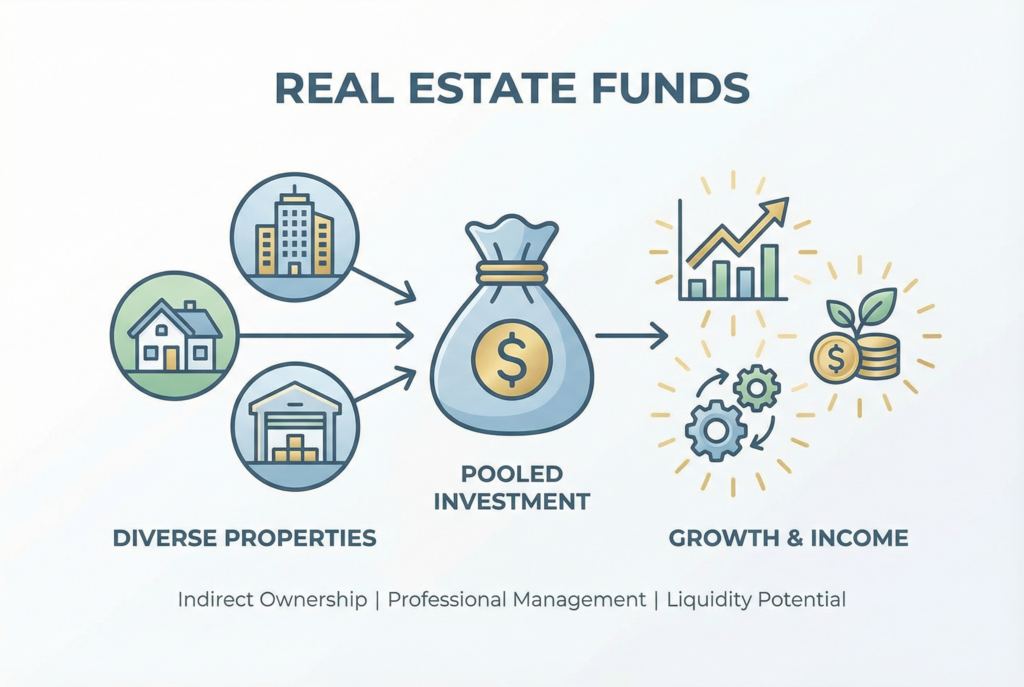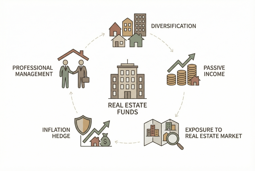 In this article, we’ll explain what real estate funds are, how they work, their key benefits, the different types available, and why they might be the right investment choice for you.